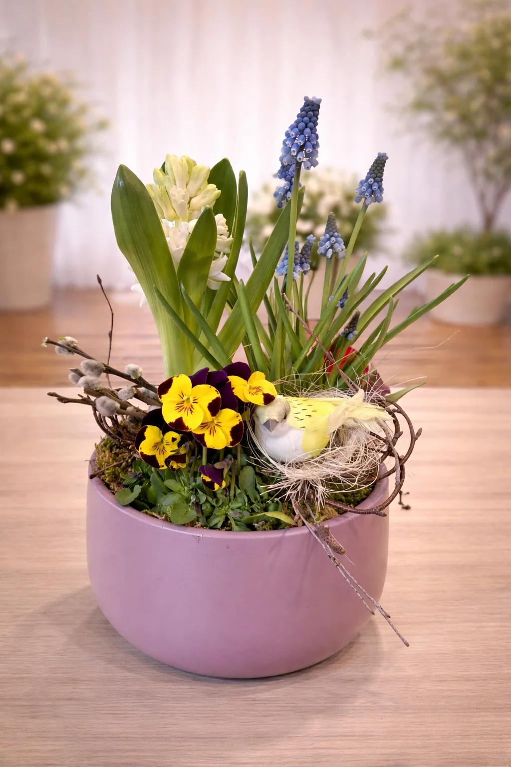Un aranjament natural, proaspăt și plin de culoare, care aduce bucuria primăverii în orice moment al anului. 🌼